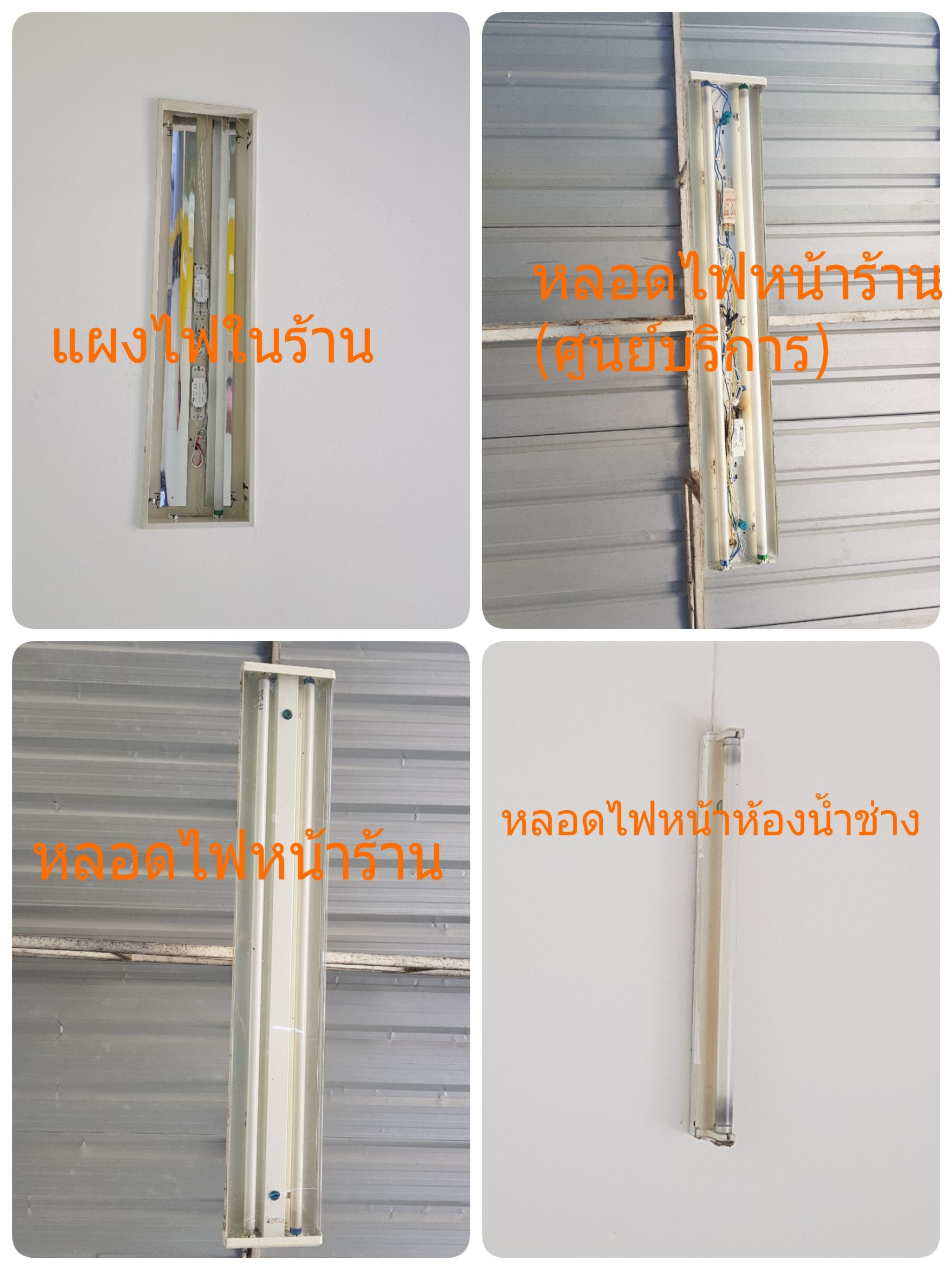 - ติดตั้งหลอดไฟใหม่ 7 หลอด ไฟล์แนบ1 | ให้ช่างเข้าไปสำรวจ ด้านหลังร้านต้องทำการถอดให้ไฟฟ้าที่เสีย และสลับเปลี่ยนหลอดไฟฟ้าใหม่ พร้อมทั้งทำการเปลี่ยนหลอดที่ขาด ด้านหน้าสำนักงานขาย | โหยบ หะหมาน หัวหน้าแผนกพัฒนาโชว์รูม | สำเร็จ | |