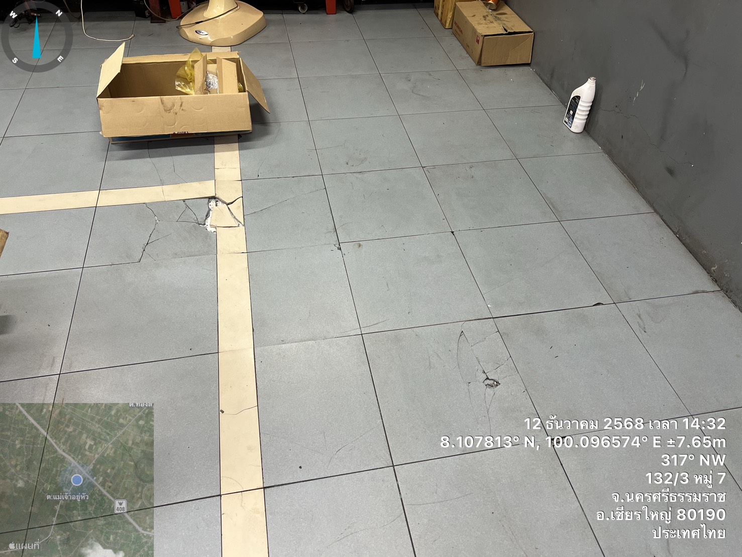 | 12 ธ.ค. 2568 เวลา 15:16 No. 202512043 | (ไม่ได้ตั้ง) | 410-ตจ.กลการบ่อล้อ | พื้นในห้องศูนย์บริการชำรุดแตก ไฟล์แนบ1 | รอรอบไตรมาสหน้า 2/69 | โหยบ หะหมาน หัวหน้าแผนกพัฒนาโชว์รูม | รอรอบไตรมาส | |