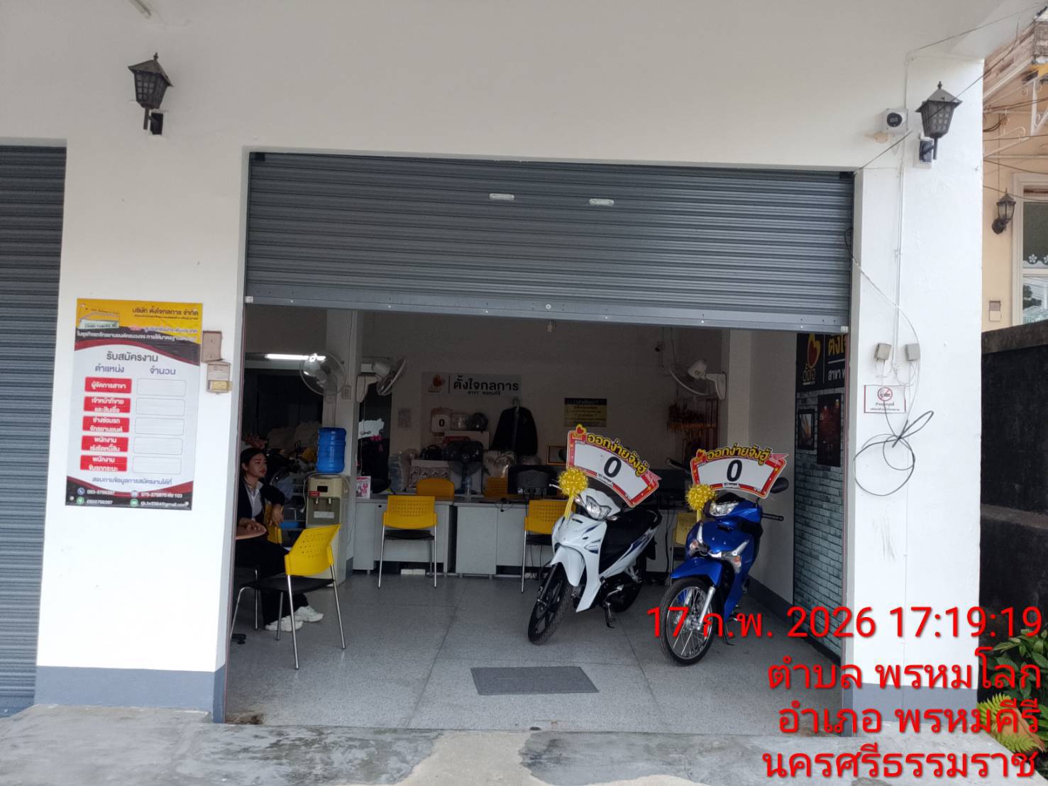 | 18 ก.พ. 2569 เวลา 10:05 No. 202602050 | ประตูเหล็กม้วนทึบ ชนิดมือดึง | 409-ตจ.กลการพรหมคีรี | เนื่องจากประตูปิดไม่ได้ ไฟล์แนบ1 ไฟล์แนบ2 | อนุมัติให้ทางผู้จัดการสาขา ดำเนินการจัดซื้อ,เปลี่ยน ภายใน 7 วัน นับจากวันที่แจ้งซ่อมเข้ามา เมื่อดำเนินการเสร็จแล้วตีสำคัญจ่ายจากสาขาพร้อมแนบแนบหลักฐานส่งการเงิน (ใบอนุมัตแจ้งซ่อม , เอกสารการจ่าย(บิล) ) **ตีสำคัญจ่าย รหัสต้นแบบ02-0040 รหัสสาขา-ชื่อสาขา/รายการที่แจ้งซ่อม/No.เลขที่ใบแจ้งซ่อม **ใบอนุมัตินี้ใช้ได้ภายในเดือนกุมภาพันธ์ | โหยบ หะหมาน หัวหน้าแผนกพัฒนาโชว์รูม | สำเร็จ | |
