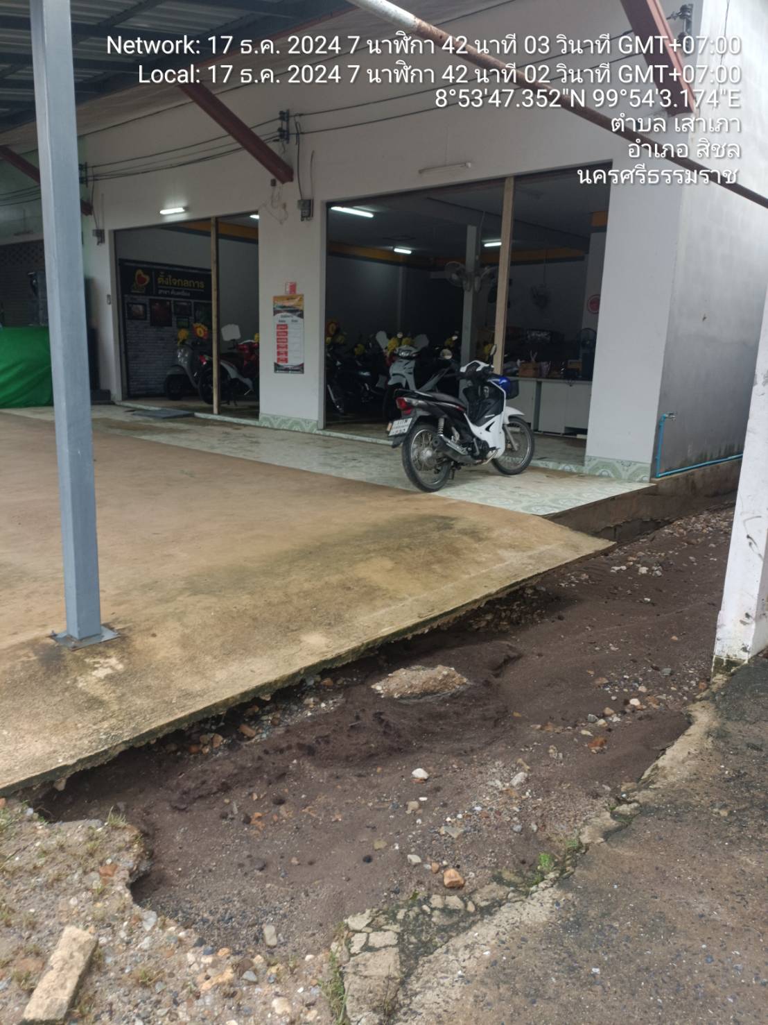 | 17 ธ.ค. 2567 เวลา 12:31 No. 202412048 | (ไม่ได้ตั้ง) | 419-ตจ.ต้นเหรียง | เนื่องจากน้ำท่วมร้าน ทำให้ดินบริเวณข้างร้าน น้ำกัดเซาะ เป็นลุมลึกต้องซื้อดินมาถมค่ะ ไฟล์แนบ1 ไฟล์แนบ2 | แจ้งซ่อม | |||