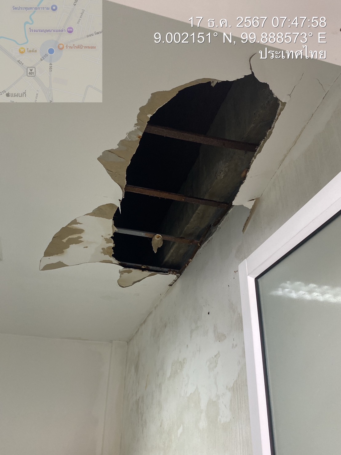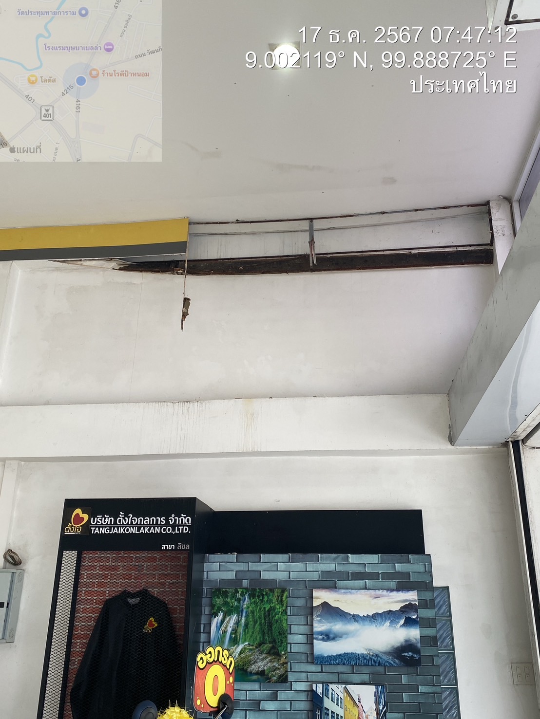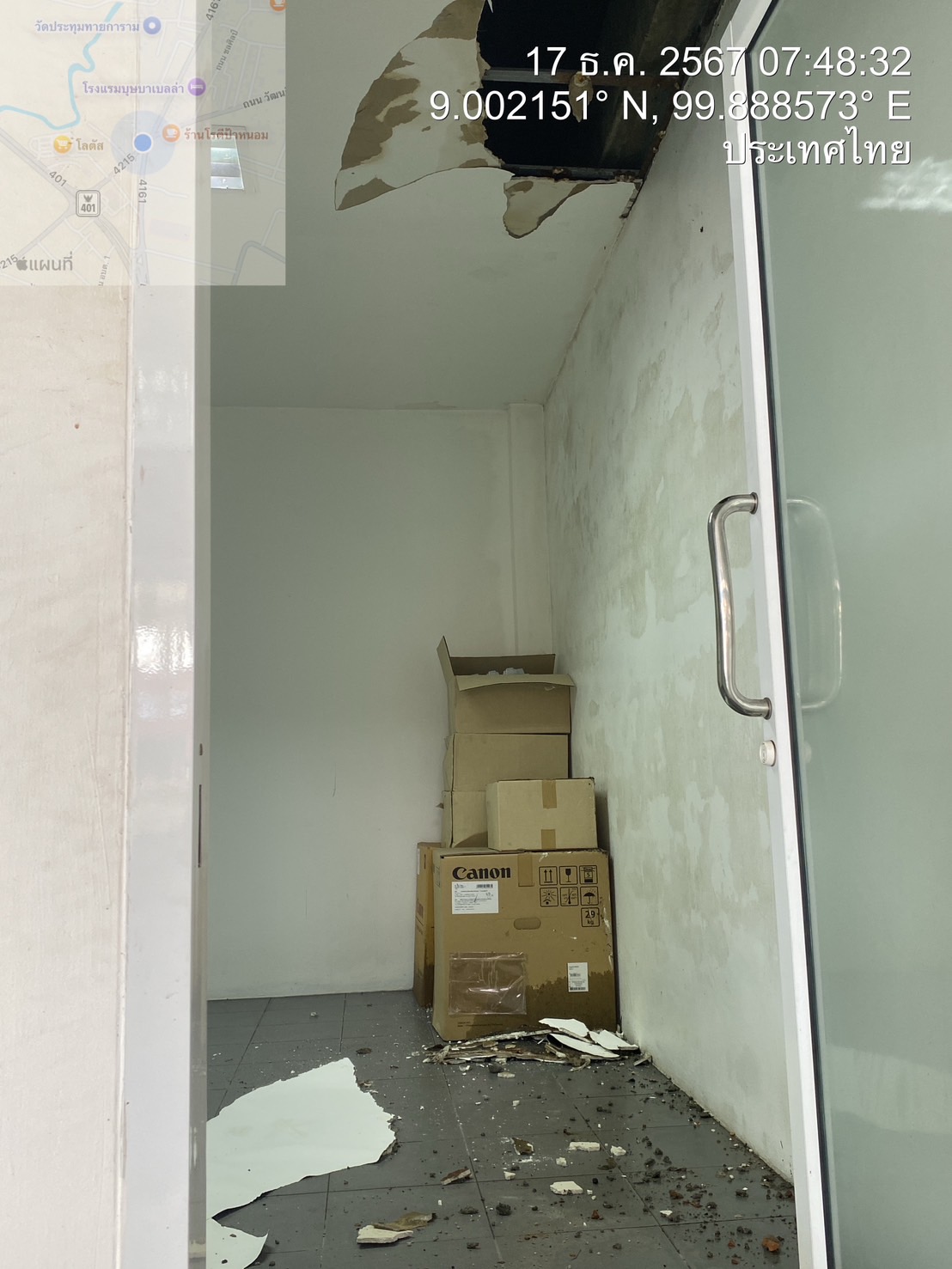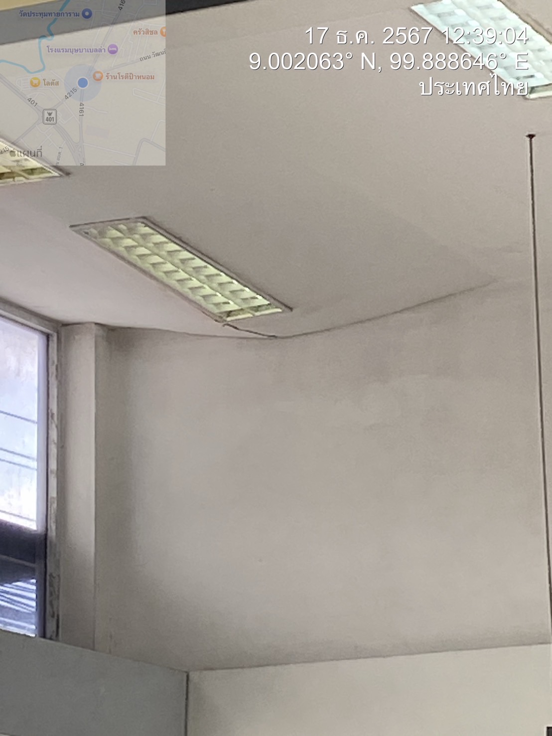 | 17 ธ.ค. 2567 เวลา 15:32 No. 202412050 | (ไม่ได้ตั้ง) | 116-ตจ.ชะอวด | ฝ้าเพดาน โซนโชว์รูม ชำรุด รอยร้าว
